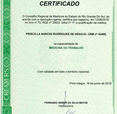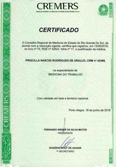 Especialistas em medicina ocupacional e segurança do trabalho.